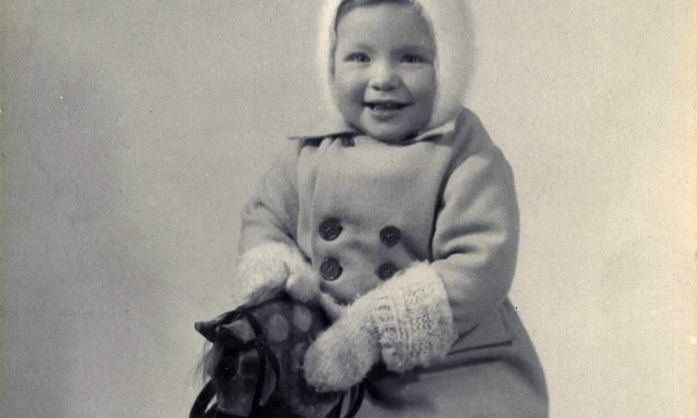 It’s definitely time to wrap up warm, much like the adorable June O’Carroll in her finest winter clothes, photographed on a rocking horse c.1930, from The O’Carrol Papers.