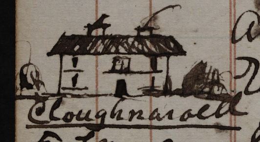 Blennerhassett’s diary refers to Cloughnarold (or Cloughanarold) House, near Rathkeale, Co Limerick, where he lived and farmed. This house is mentioned in a number of online obituaries from the Massy and Fitzgerald families in the 1800s, and as the residence of Magistrate James Fitzgerald Massy Esq in 1847.5 The house is now derelict, included on the Landed Estates Database. Blennerhassett’s doodle of his homestead maybe the only surviving visual representation left of the dwelling in its prime.