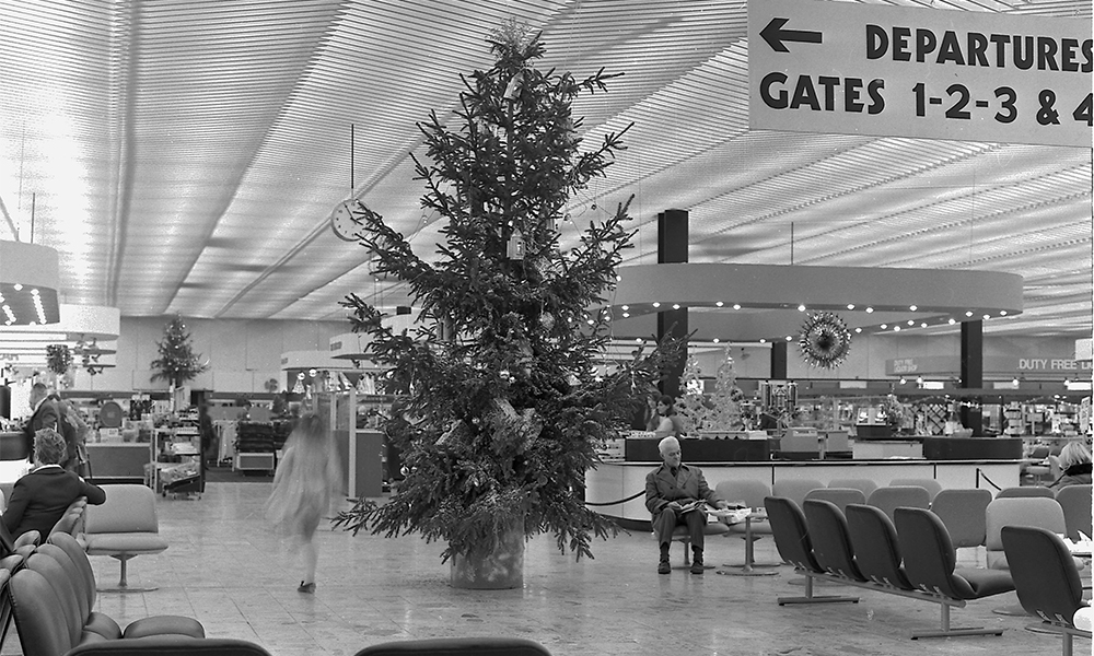 Photographs of Christmas decorations at the Duty Free at Shannon Airport in 1971