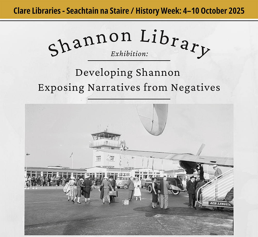The exhibition ‘Developing Shannon: Exposing Narratives from Negatives’ forms part of Clare Libraries History Week programme. On loan from the Glucksman Library, it showcases the Shannon Development Photographic Collection, donated by the Shannon Airport Group in 2014. Through striking images and informative panels, it captures the transformation of the Shannon region from its rural roots to a hub of industry and tourism and offers a vivid glimpse into Irish life and fashion in the latter half of the 20th century.